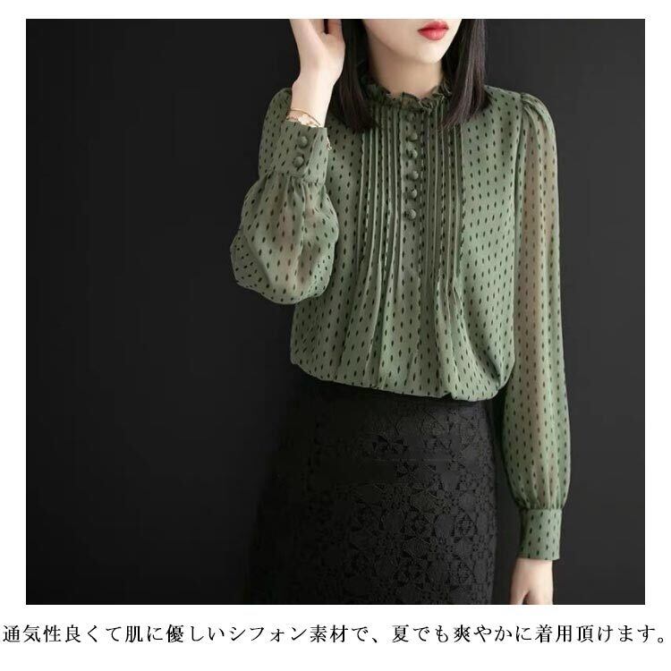 ブラウス シャツ レディース 3色 M-3XL 長袖 ドット柄 きれいめ オフィス スタンドカラー 韓国 ファッション コーデ おすすめ カジュアル きれいめ 大きいサイズ 人気 ゆったり 20代 30代 40代 50代