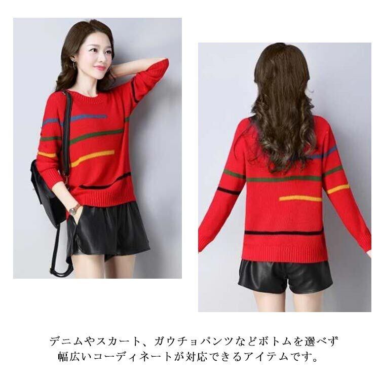 ニット トップス セーター レディース 5色 S-2XL 長袖 ボーダー シンプル カジュアル クルーネック 8185
