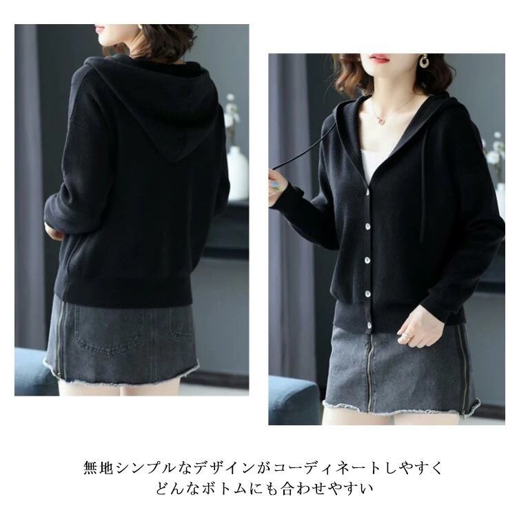 ニットカーディガン フード付き セーター レディース 3色 S-2XL Vネック 無地 長袖 カジュアル おしゃれ 春秋 8200