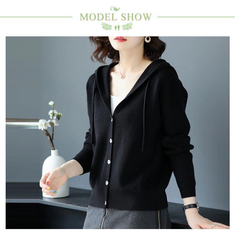 ニットカーディガン フード付き セーター レディース 3色 S-2XL Vネック 無地 長袖 カジュアル おしゃれ 春秋 韓国 ファッション コーデ おすすめ カジュアル きれいめ 大きいサイズ 人気 ゆったり 20代 30代 40代 50代