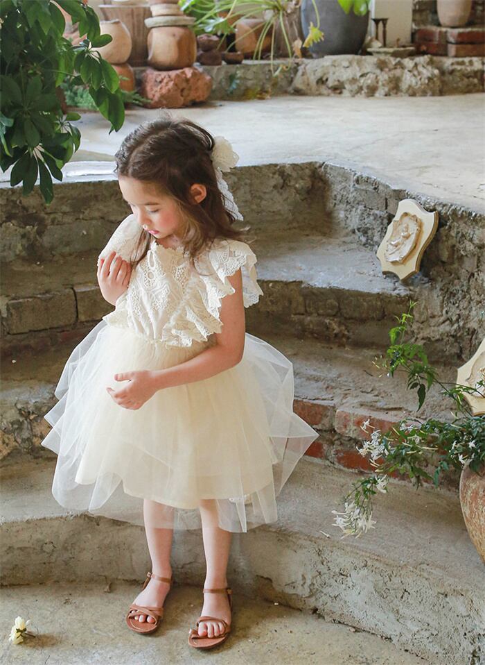 結婚式やお誕生日などの特別なイベントにぴったりのドレスです。華やかな雰囲気を醸し出し、子供の特別な日を彩ります。レースのディテールやフリルの装飾が、お姫様気分を盛り上げます。