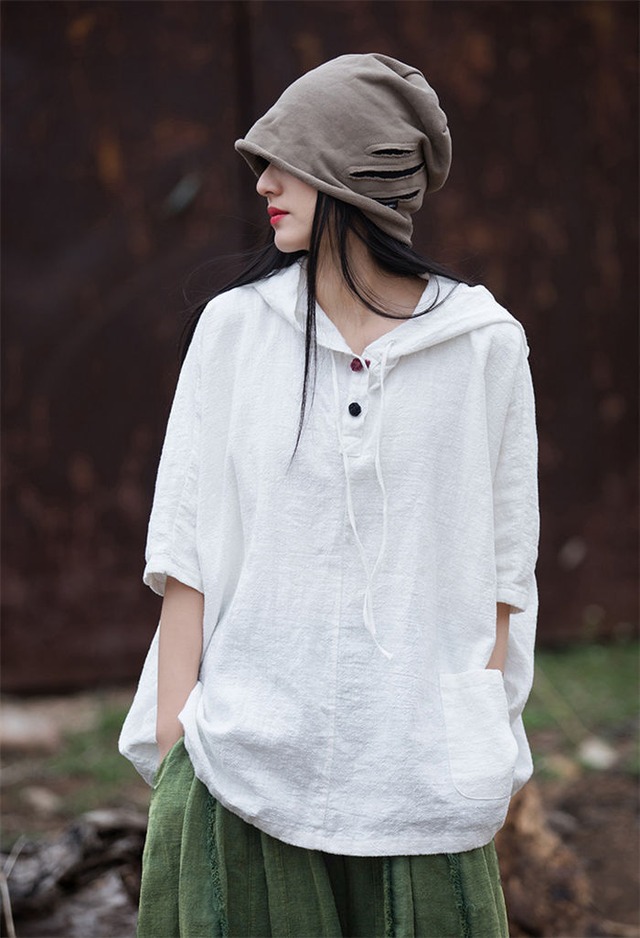 半袖パーカー プルオーバー 綿麻シャツ レディース 2色 フード付き ゆったり カジュアル 無地 リネン 涼しい おしゃれ 韓国 ファッション コーデ おすすめ カジュアル きれいめ 大きいサイズ 人気 ゆったり 20代 30代 40代 50代
