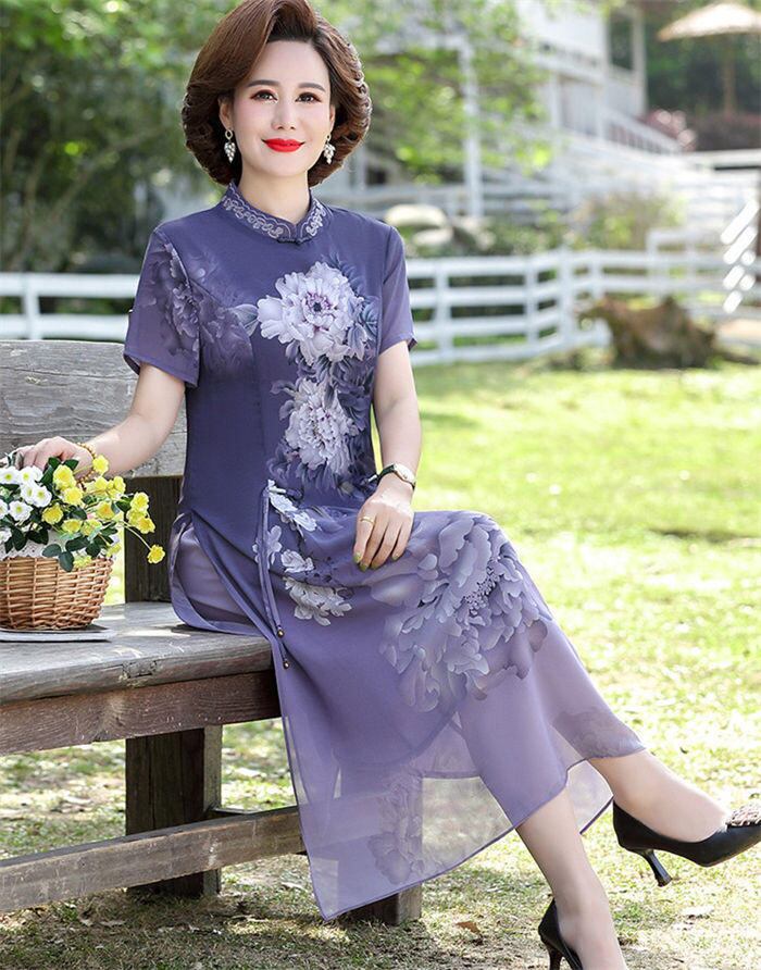 ワンピース 半袖 レディース 2色 花柄 XL-4XLsize チャイナドレス風 ロング丈 エレガント 大きいサイズ 韓国 ファッション コーデ おすすめ カジュアル きれいめ 大きいサイズ 人気 ゆったり 20代 30代 40代 50代