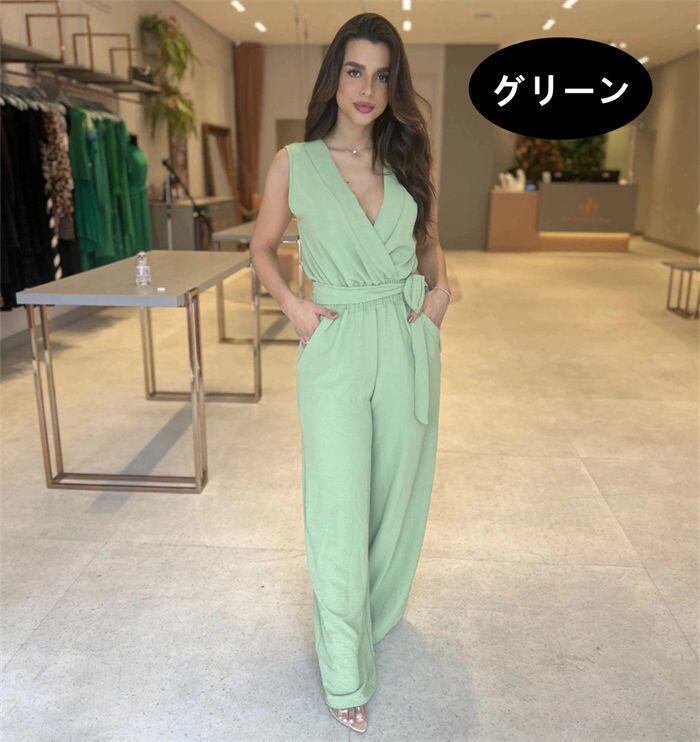 セットアップ オールインワン レディース 5色 S-XLsize ノースリーブ ワイドパンツ おしゃれ 23zm210