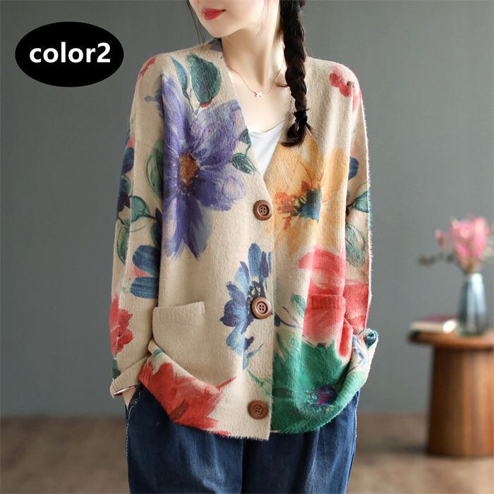 用途: 花柄のニットカーディガンはカジュアルなスタイルにぴったりです。デニムパンツやスカートと合わせるだけで、おしゃれなコーディネートが完成します。長袖デザインなので、春から秋にかけての季節に活躍することができます。