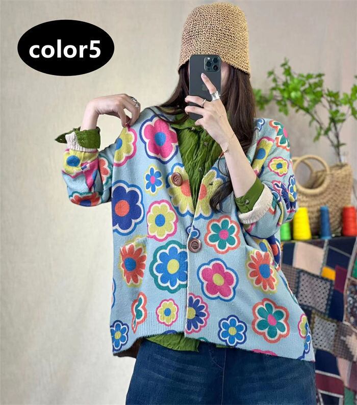 ニットカーディガン セーター 花柄 レディース 5色 フリーサイズ 長袖 カジュアル ゆったり おしゃれ 韓国 ファッション コーデ おすすめ カジュアル きれいめ 大きいサイズ 人気 ゆったり 20代 30代 40代 50代