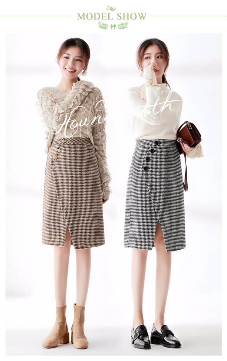 スカート タイトスカート 千鳥柄 レディース 2色 S-XL ひざ丈 裏地付き 秋冬 オフィス きれいめ 韓国 ファッション コーデ おすすめ カジュアル きれいめ 大きいサイズ 人気 ゆったり 20代 30代 40代 50代