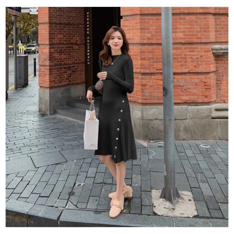 ワンピース ニットワンピ レディース 4色 フリーサイズ 長袖 ひざ丈 きれいめ おしゃれ 秋冬 韓国 ファッション コーデ おすすめ カジュアル きれいめ 大きいサイズ 人気 ゆったり 20代 30代 40代 50代