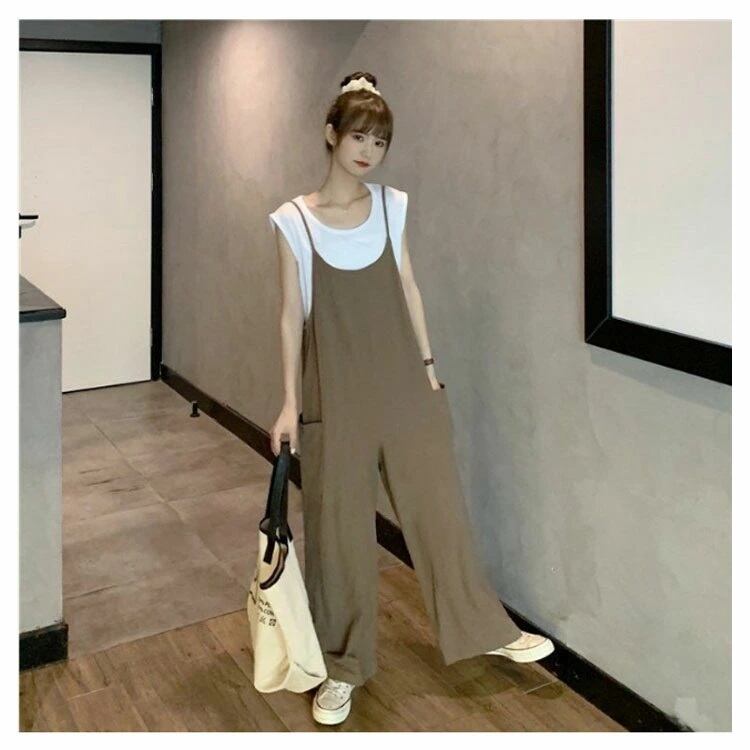 オールインワン サロペット 半袖tシャツ 2点セット オーバーオール レディース 2色 M-2XL ゆったり カジュアル 韓国 ファッション コーデ おすすめ カジュアル きれいめ 大きいサイズ 人気 ゆったり 20代 30代 40代 50代