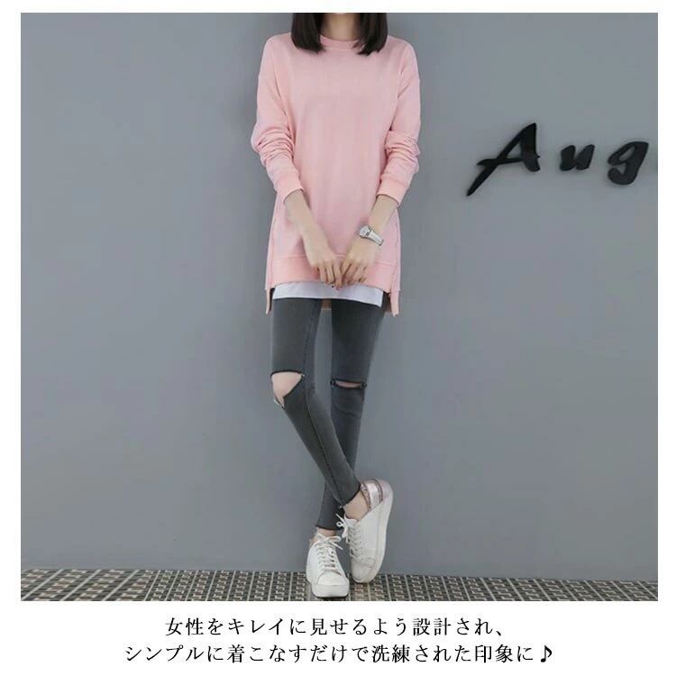 スウェット トレーナー プルオーバー レディース 2色 M-4XL ロング丈 無地 サイドファスナー 重ね着風 8240