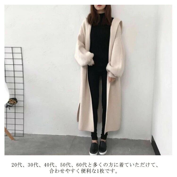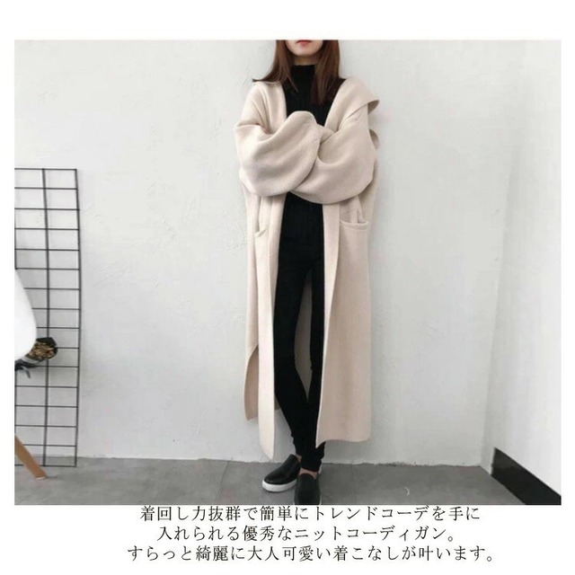 ニットカーディガン ロング丈 フード付き 厚手 レディース 2色 ワンサイズ 無地 ゆったり 秋冬 おしゃれ 韓国 ファッション コーデ おすすめ カジュアル きれいめ 大きいサイズ 人気 ゆったり 20代 30代 40代 50代