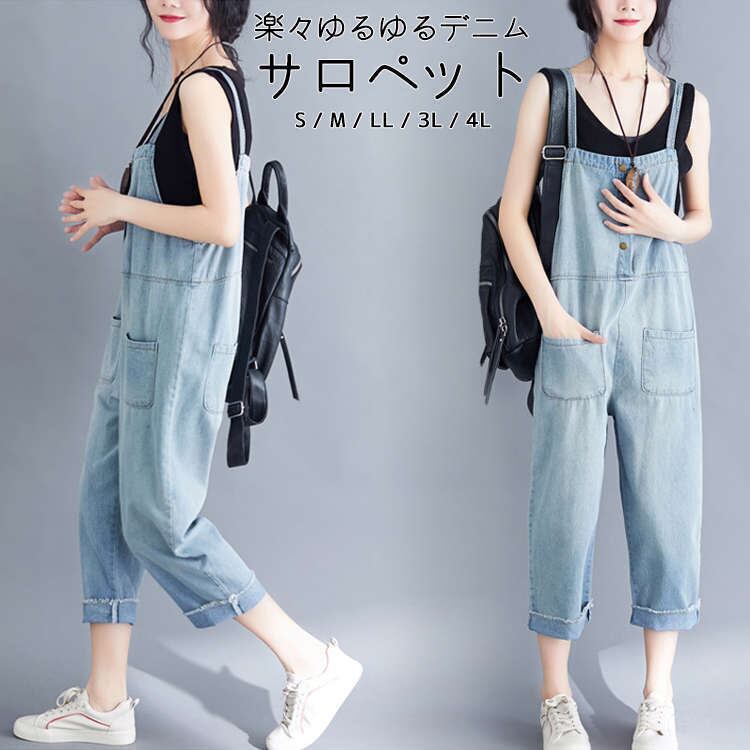 サロペット オールインワン レディース ライトブルー S-3XL サルエルパンツ カジュアル オーバーオール おしゃれ 8276
