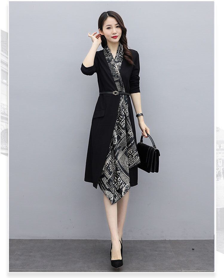 ワンピース Vネック 長袖 レディース 黒 M-6L きれいめ お出かけ オフィス 結婚式 二次会 おしゃれ 韓国 ファッション コーデ おすすめ カジュアル きれいめ 大きいサイズ 人気 ゆったり 20代 30代 40代 50代