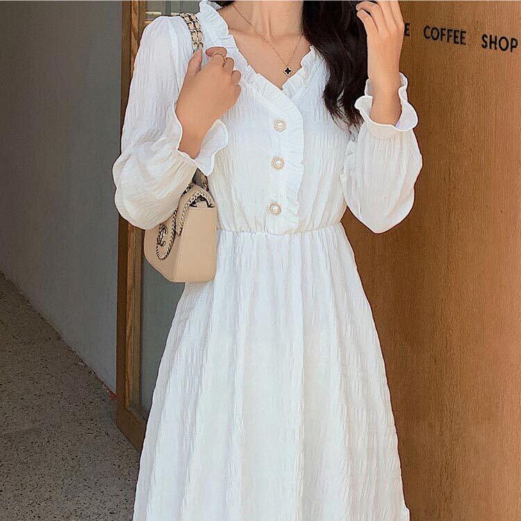 ワンピース レディース 白 S-2XL Vネック 無地 マキシ丈 ロング丈 リゾート 旅行 結婚式 韓国 ファッション コーデ おすすめ カジュアル きれいめ 大きいサイズ 人気 ゆったり 20代 30代 40代 50代