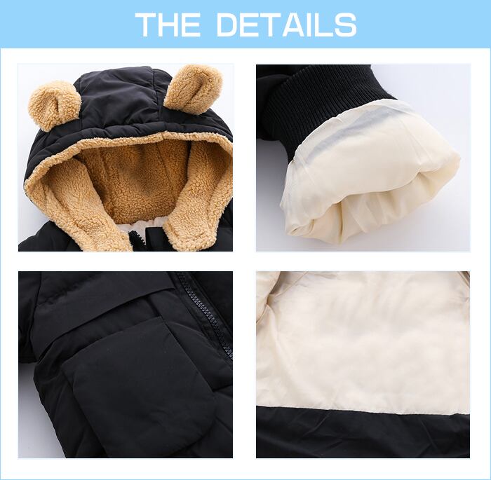 厚手デザイン: 寒冷な天候からお子様を保護するために中綿が豊富に使用されており、防寒性に優れています。