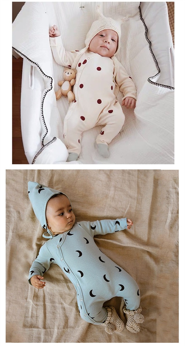 このロンパースは、新生児から幼児期までの赤ちゃんや子供たちに対応する多目的なアイテムで、おしゃれなデザインと機能性を両立させています。