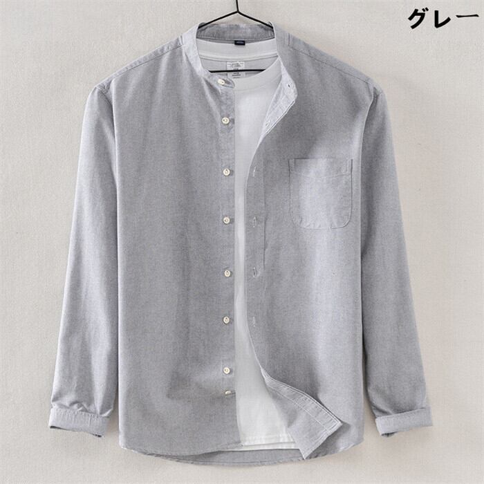 シャツ 長袖シャツ メンズ ノーカラー 8色 S~4XL 無地 カジュアル 春秋 おしゃれ 23zm318