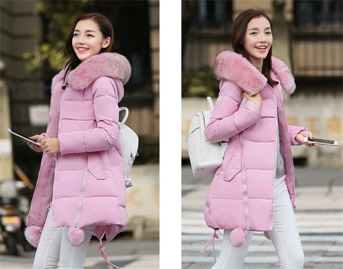 ファー付き: コートには、フードや衿の部分にファーアクセントが施されており、寒冷な天候から首と頭部を保護し、暖かさを提供します。ファーはファッション的なアクセントとしても機能します。