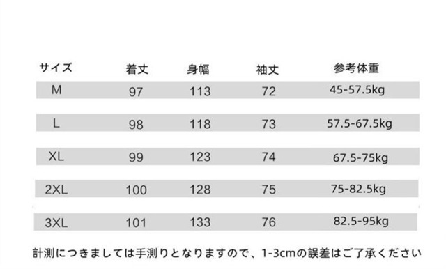 サイズ展開: Mサイズから3XLサイズまで、多くのサイズが提供されているため、様々な体型に合わせて選んでいただけます。