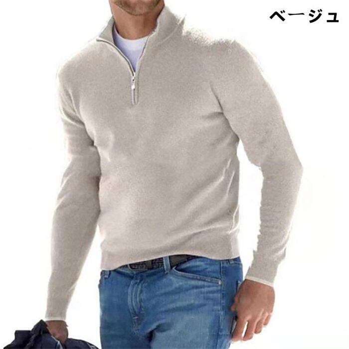 ハイネックカットソー ハーフジップ メンズ 10色 S-5XL 春秋 無地 カジュアル トップス 23zm432