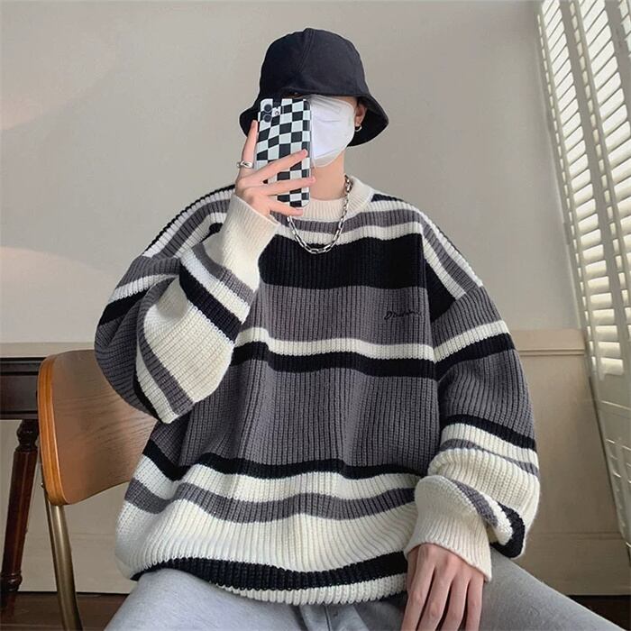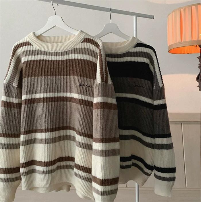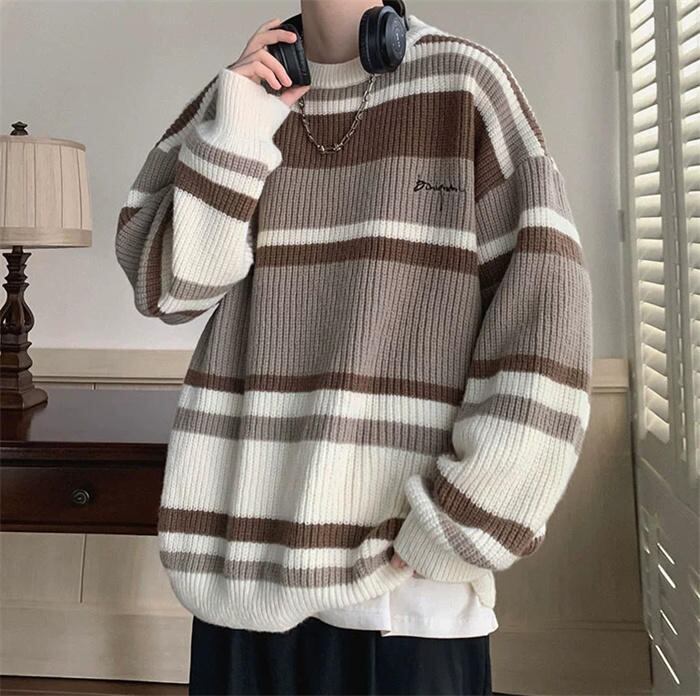 着こなし: これらのボーダーニットセーターは、ストリート系のファッションやカジュアルなスタイリングに適しています。ジーンズ、カジュアルなパンツ、スニーカーと組み合わせることで、リラックスしたカジュアルスタイルを作り出すことができます。