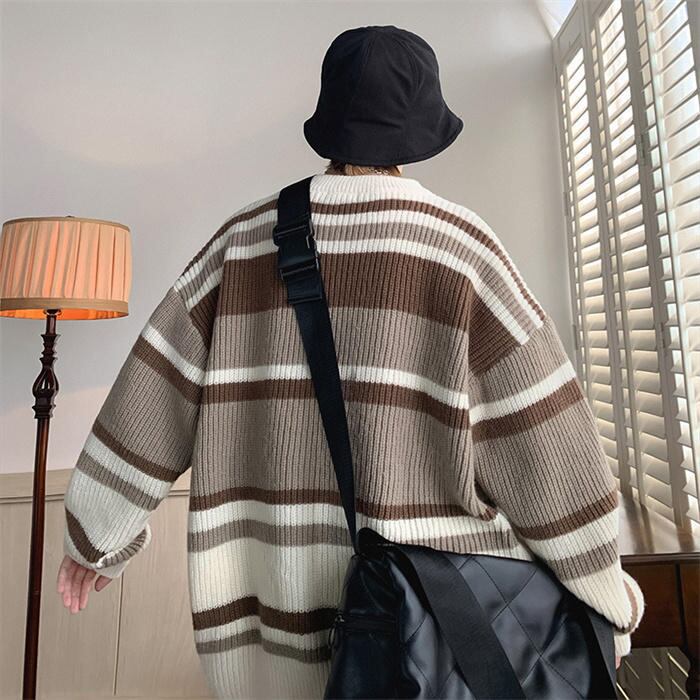 ボーダーニットセーターは、カジュアルでおしゃれなスタイリングに欠かせないアイテムであり、異なるカラーの選択肢により、様々な場面で楽しむことができます。オーバーサイズのデザインは、快適な着心地を提供し、ストリートファッション愛好者にとって魅力的な選択肢です。