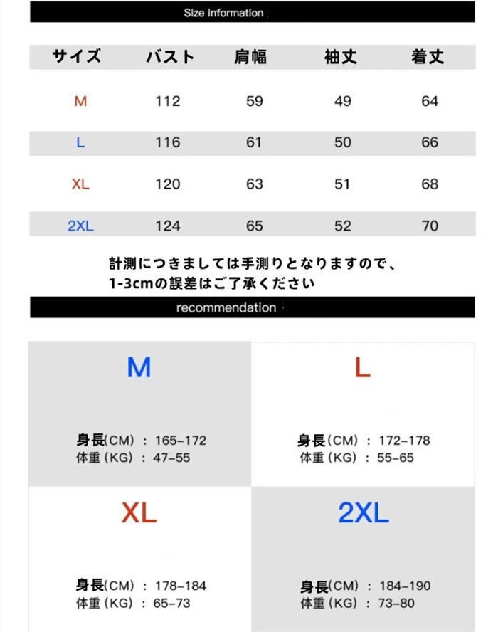 サイズ: サイズはMから2XLまで提供されており、様々な体型に合わせた選択が可能です。