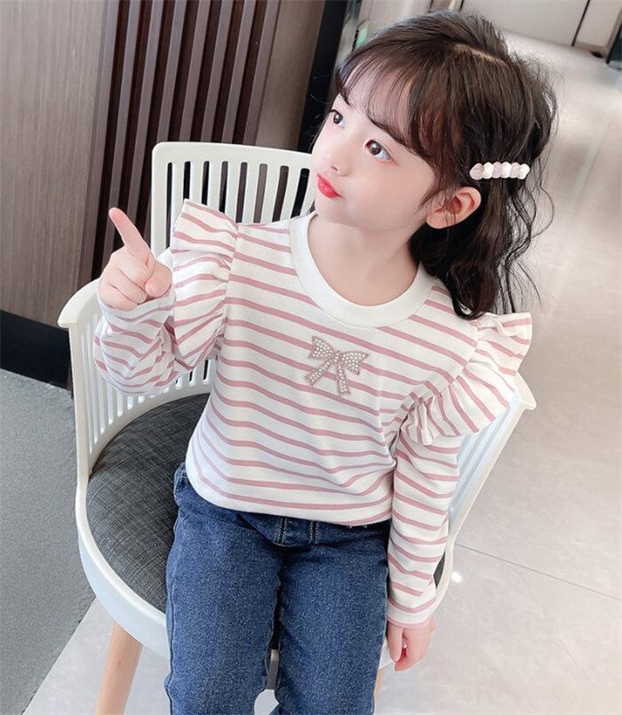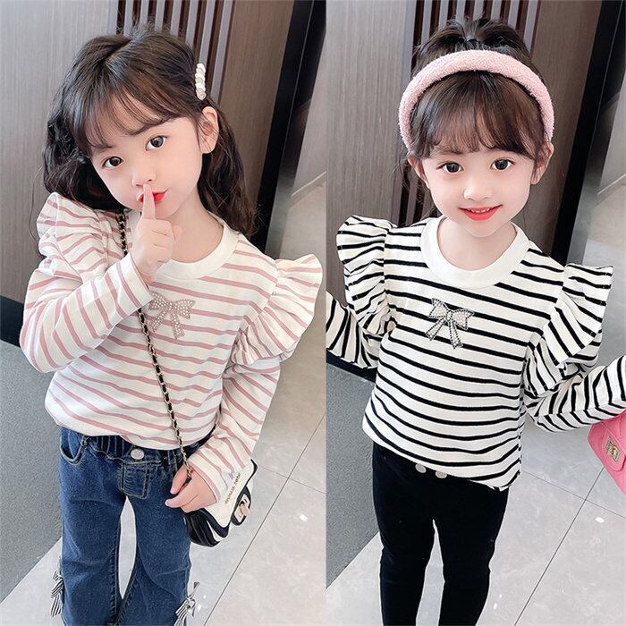 キッズカットソー ブラウス 長袖 女の子 2色 110-160㎝ ボーダー フリル カジュアル かわいい 韓国 ファッション コーデ おすすめ カジュアル きれいめ 大きいサイズ 人気 ゆったり 子供服 キッズ