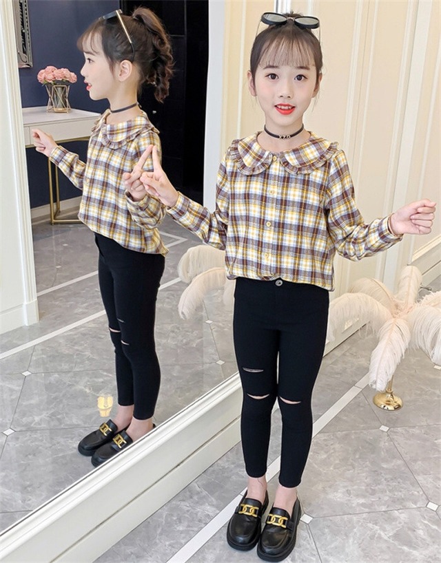 キッズシャツ ブラウス 長袖 女の子 2色 110-160㎝ フリル チェックシャツ おしゃれ 秋冬 カジュアル 韓国 ファッション コーデ おすすめ カジュアル きれいめ 大きいサイズ 人気 ゆったり 子供服 キッズ