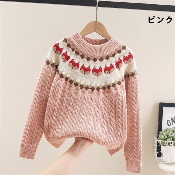 キッズセーター ニット 長袖 女の子 3色 110-160㎝ 厚手 おしゃれ かわいい カジュアル 23zm464
