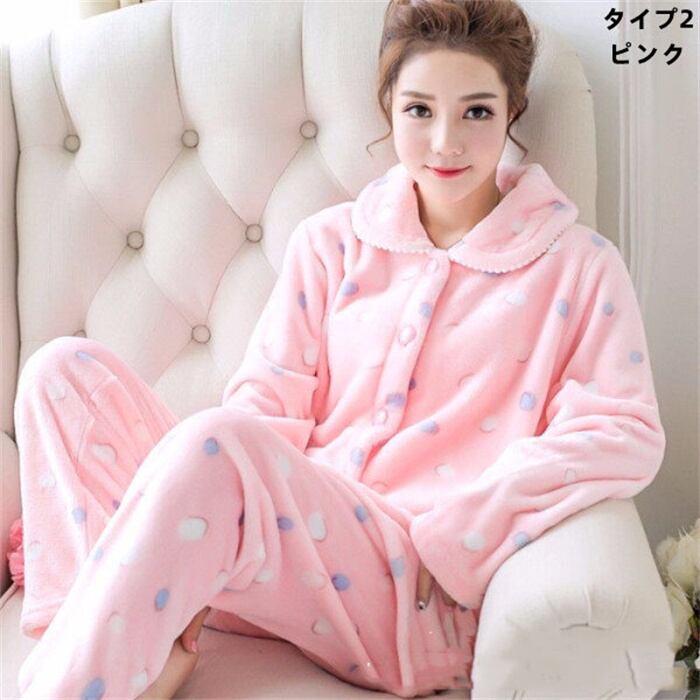 パジャマ ルームウェア 上下セット レディース 3色 M-XXL 裏起毛 もこもこ 暖かい 防寒 部屋着 冬用 23zm475