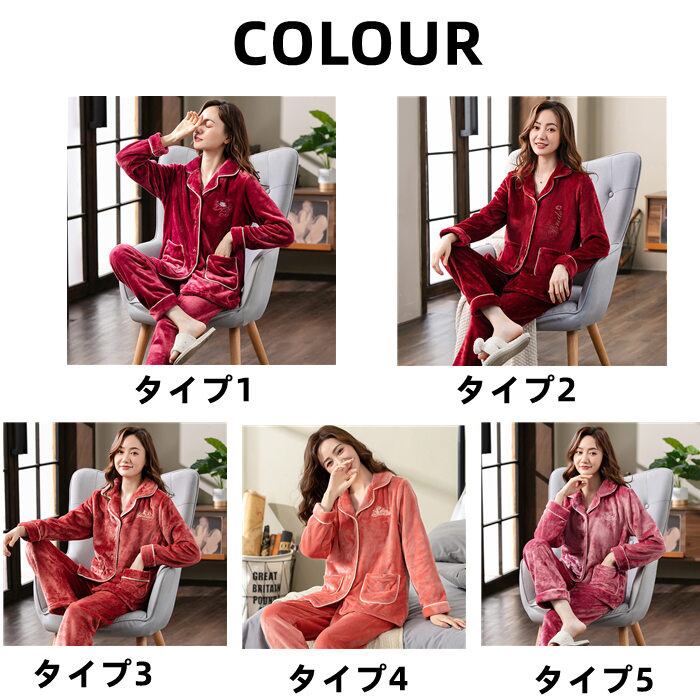 パジャマ ルームウェア 上下セット レディース 10色 M-XXXL セットアップ もこもこ 暖かい 防寒 部屋着 冬用 23zm478