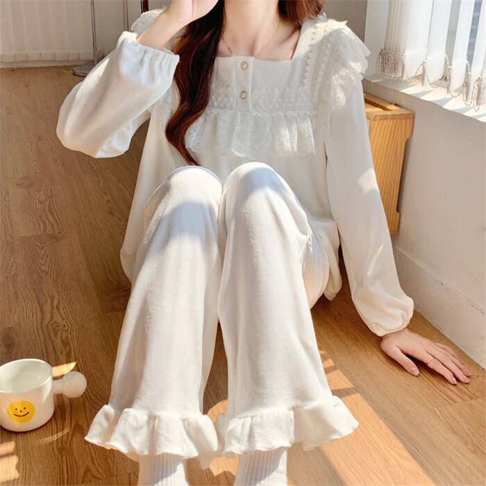 パジャマ ルームウェア レディース 2色 S-XL セットアップ 暖かい 防寒 部屋着 冬用 韓国 ファッション コーデ おすすめ カジュアル きれいめ 大きいサイズ 人気 ゆったり 20代 30代 40代 50代