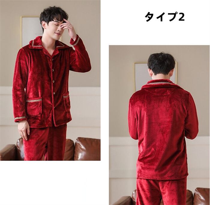 パジャマ ルームウェア メンズ 6色 L-3XL セットアップ 暖かい もこもこ 防寒 部屋着 冬用 23zm486