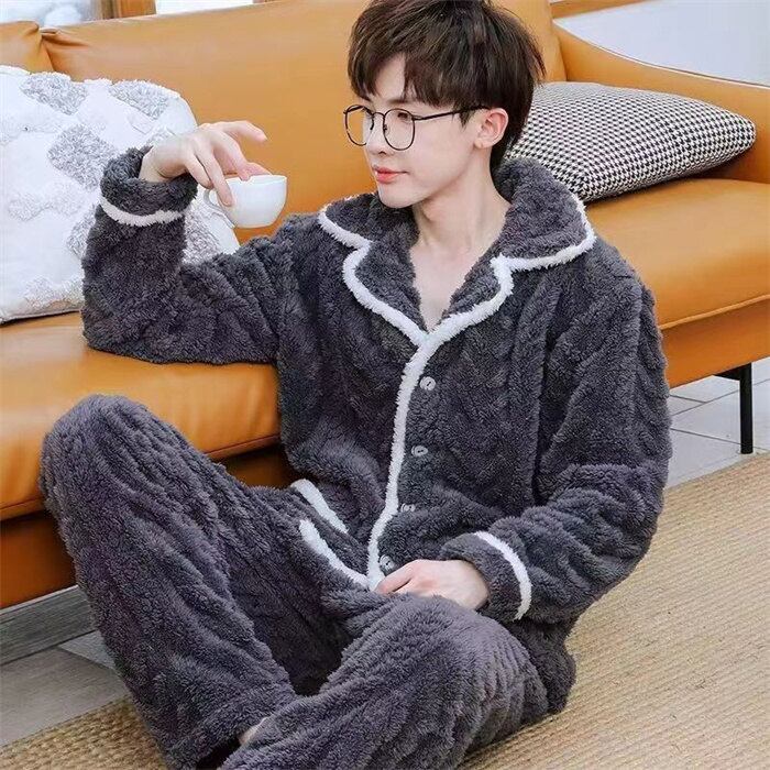 パジャマ ルームウェア メンズ グレー L-3XL セットアップ 暖かい もこもこ 防寒 部屋着 冬用 韓国 ファッション コーデ おすすめ カジュアル きれいめ 大きいサイズ 人気 ゆったり 20代 30代 40代 50代