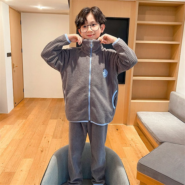 パジャマ キッズ 男の子110-170㎝ グレー セットアップ 冬用 もこもこ ふわふわ 部屋着 子供服 小学生 中学生 韓国 ファッション コーデ おすすめ カジュアル きれいめ 大きいサイズ 人気 ゆったり 20代 30代 40代 50代