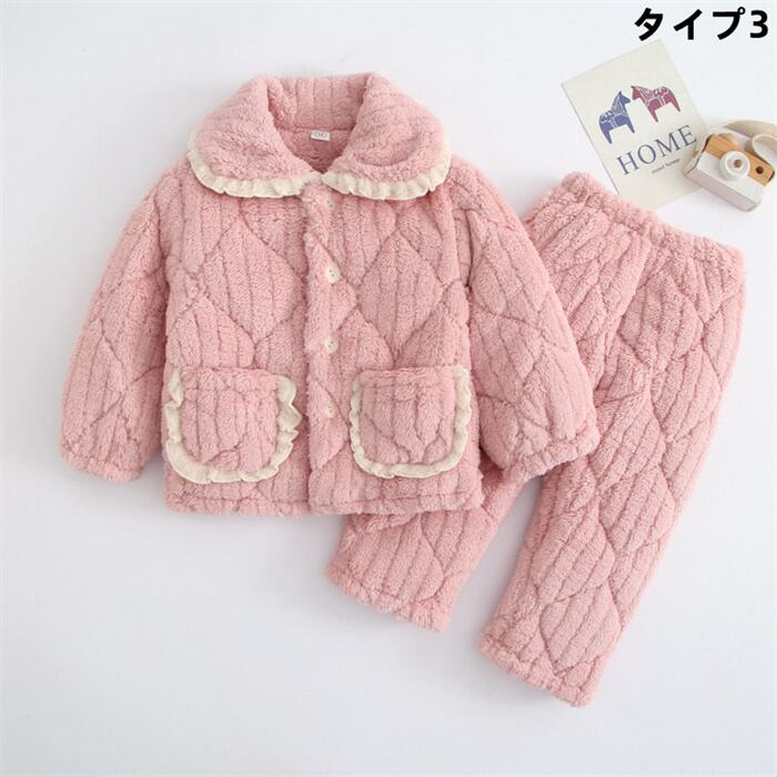 パジャマ キッズ 女の子 男の子8-22号 7色 セットアップ 冬用 厚手 もこもこ ふわふわ 部屋着 子供服 ベビー服 23zm497