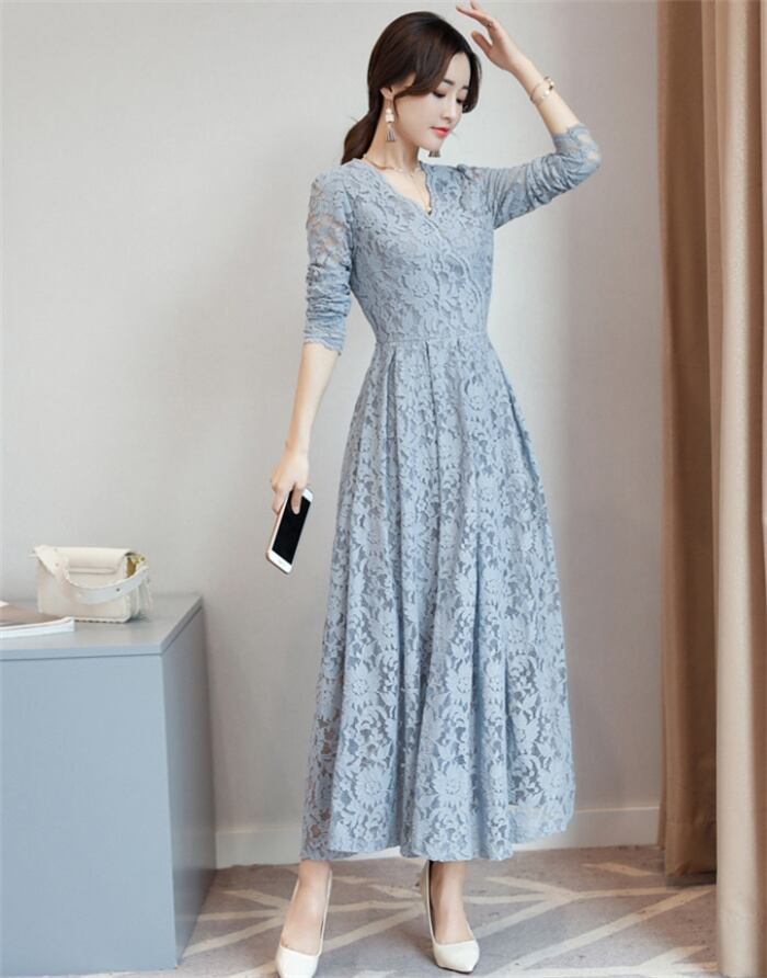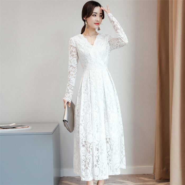 パーティードレス ワンピース レディース 4色 M-2XL 長袖 レース Vネック フォーマル 結婚式 二次会 ドレス 韓国 ファッション コーデ おすすめ カジュアル きれいめ 大きいサイズ 人気 ゆったり 20代 30代 40代 50代