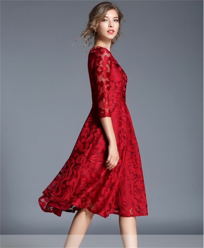 パーティードレス ワンピース レディース 4色 S-5XL 七分袖 レース Aライン フォーマル 結婚式 二次会 ドレス 韓国 ファッション コーデ おすすめ カジュアル きれいめ 大きいサイズ 人気 ゆったり 20代 30代 40代 50代