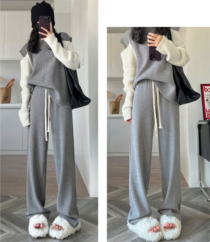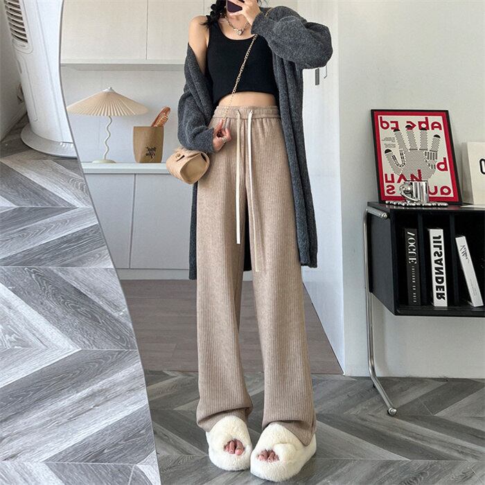 ワイドパンツ ニットパンツ レディース 3色 S-XXLsize ゆったり 裏起毛 厚手 9分丈 ロング丈 秋冬 カジュアル 韓国 ファッション コーデ おすすめ カジュアル きれいめ 大きいサイズ 人気 ゆったり 20代 30代 40代 50代