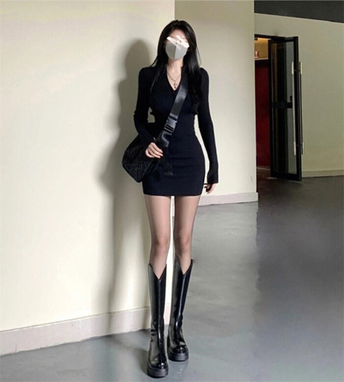 ワンピース ニットワンピース レディース 2色 S-XL 長袖 ミニ タイト おしゃれ セクシー 23zm693