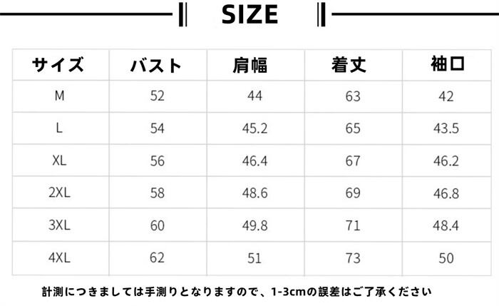 サイズ表の実寸法は商品によって1-3cm程度の誤差がある場合がございます。