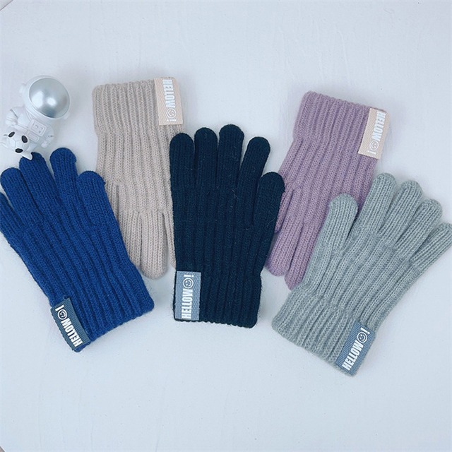キッズ手袋 子供用 ニット手袋 男の子 女の子 4-8歳 5色 秋冬 裏起毛 あったかい もこもこ 幼稚園 小学生 23zm796