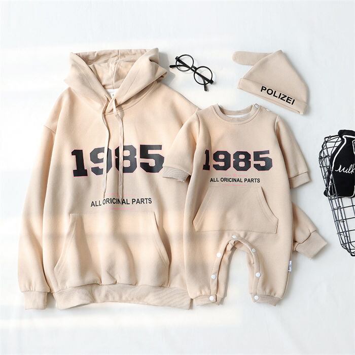 親子でお揃いで着る親子ペアルックのパーカー、赤ちゃん用のロンパースセットが新登場です!シンプルなデザインで、男の子、女の子どちらにもぴったりなデザインです赤ちゃん用は2点セット、デザインでパパやママとお揃いコーディネートが楽しめます。お子様へのプレゼントやお誕生日のサプライズにもおすすめです。