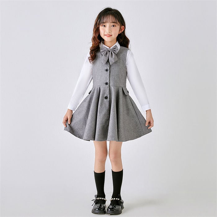 女の子-シャツセット(ワンピース+シャツ+蝶ネクタイ+靴下+バッジ)
