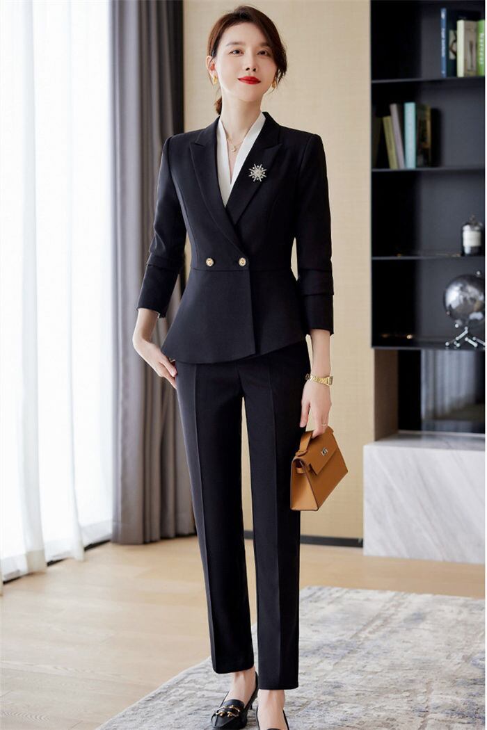 オフィスや就活にぴったりのセットアップスーツが登場しました!ダブルボタンのジャケットとシンプルなデザインのパンツ、またはスカートがセットになっています。3色展開で、お好みに合わせて選ぶことができます。さらに、サイズ展開もS〜3XLまで幅広く揃っていますので、様々な体型の方にも対応しています。