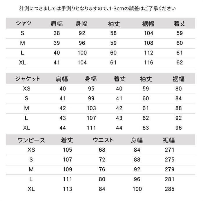 サイズ表の実寸法は商品によって1-3cm程度の誤差がある場合がございます。