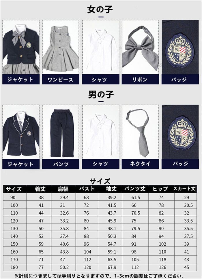 ★特徴:お子様の特別な日に。男の子も女の子も、入学式や卒業式にぴったりの制服セットアップが登場しました。ジャケット、パンツまたはスカート、シャツ、ネクタイ、リボンの5点セットで、いつもとは一味違うフォーマルな装いを演出します。
