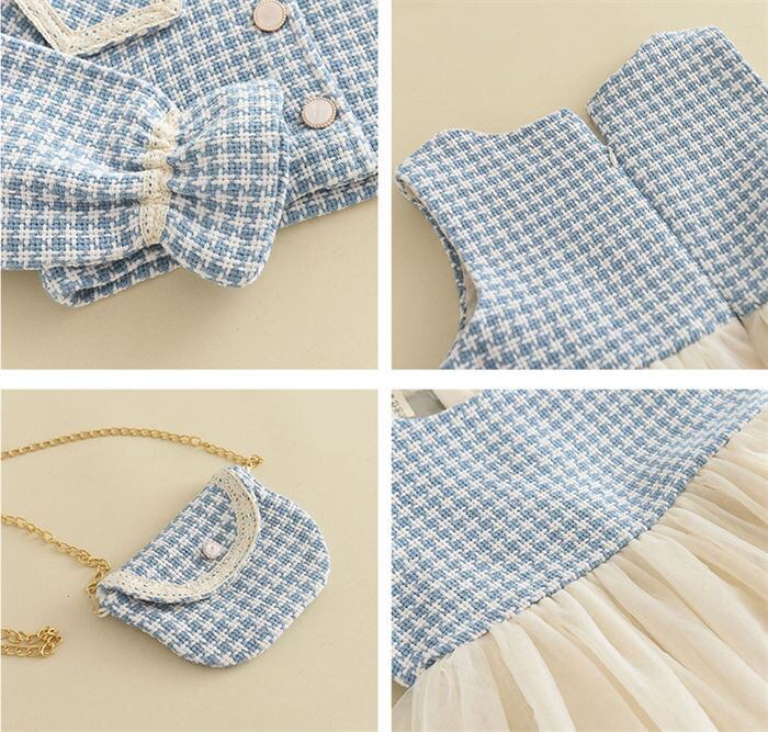 ジャケットは涼しい季節にぴったりの軽量素材を使用し、ワンピースはプリーツや花柄デザインが可愛らしさを引き立てます。さらに、セットのバッグは小さなお子様でも持ちやすいサイズ感で、お出かけがもっと楽しくなります。