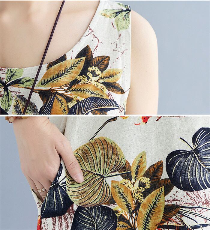 ワンピース ノースリーブワンピース 花柄 レディース 3色 M-5XLsize 春夏 リゾート 綿麻 マキシワンピース 24zm119